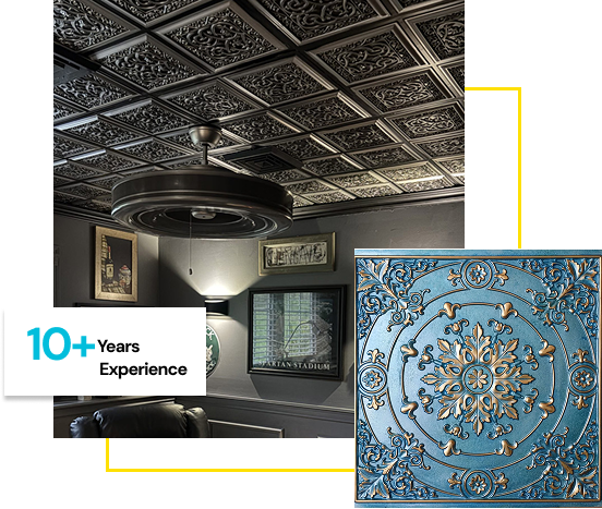 Our faux tin tiles stay in optimal condition for many years. The premium material used to manufacture the tiles is lightweight yet durable. Our faux tin tiles are all you need to breathe new life into your garage.